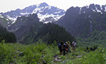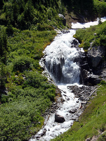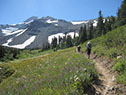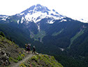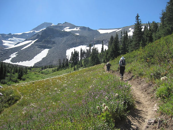 PDF formatThe Timberline Trail circling Mt Hood offers virtually everything a hiker could dream of: spectacular views, alpine meadows carpeted with wildflowers, beautiful streams and glacier-fed rivers, quiet forests and no crowds. The 41-mile trail runs mostly at the timberline and drops in and out of canyons carved by the rivers that flow from the many glaciers on the mountain.