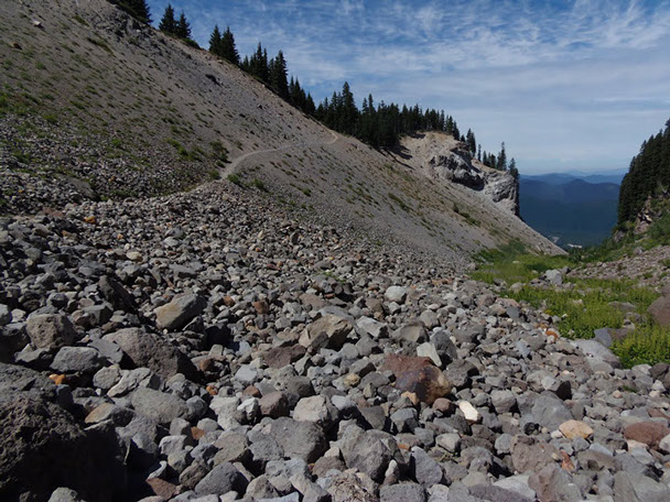 A portion of the trail was destroyed in 2006 by a massive slide and was recently restored in 2017-18. Around & About Mount Hood, 3rd Edition includes this new section of the trail.